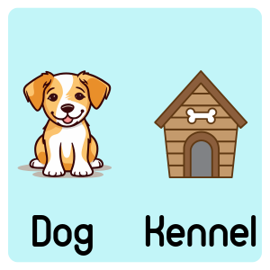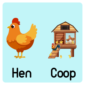 These are animals that we see often in villages, cities, or schools. Their homes are commonly used in vocabulary teaching for beginners.