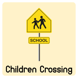 - Children Crossing – Alerts drivers of children crossing ahead.