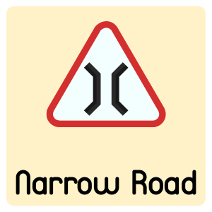 - Narrow Road – Warns that the road ahead becomes narrow, requiring extra caution.
