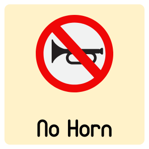 - No Horn – Indicates that honking is not allowed, usually near schools, hospitals, or quiet zones.