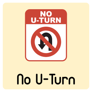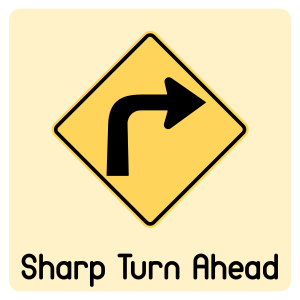 - Sharp Turn Ahead — Yellow triangle with curved arrow