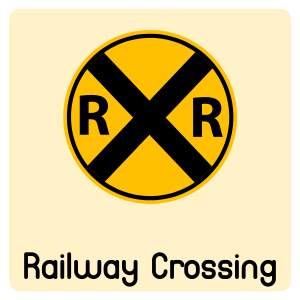 - Railroad Crossing – Warns of an upcoming railway crossing.