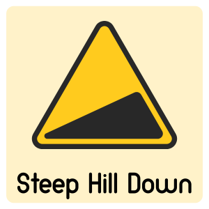 - Steep Hill Down – Alerts drivers of a steep downhill slope ahead, advising lower gear and careful braking.